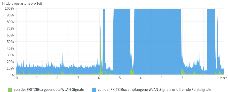 Dann habe ich nochmal gründlich überlegt und beim Beobachten des Diagramms für die Funkkanal-Auslastung auf die Festplatte zugegriffen: und siehe da, genau in diesem Augenblick gingen die Störsignale auf 100%.